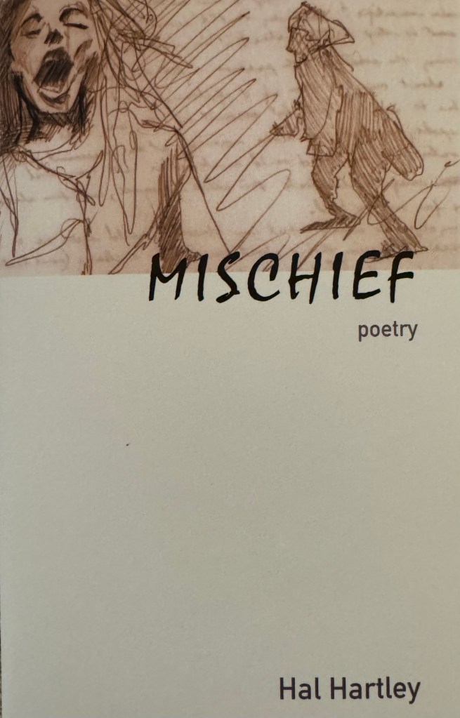 Mischief speaks loudest when language and situation are pushed to their limits, as in “Adventures in Reading,” in which time is folded into itself as a man reads a translation of a centuries-old account about a nun’s self-education while undergoing his own learning process, described here as “an audacity, a kind of violence.” And while he insists “there is no time without boundaries,” the poem seems to demonstrate otherwise. Selections like this, and there are plenty in Mischief, transcend the film world that is Hartley’s usual medium and are a welcomed and rewarding addition to his oeuvre.