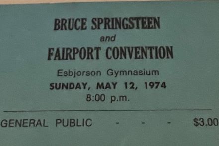 The headliner that night was Bruce Springsteen, a popular draw in the area but still a year away from beginning his candidacy for superstar status, with Fairport as his opening act, and that’s how the concert was advertised until the doors to the college’s Esbjorson Gymnasium opened on the night of May 12. Greeting ticket holders was the announcement that Springsteen had cancelled.(2) Attendees were told refunds could be obtained at one of the tables in the foyer. Some availed themselves of the offer, but those who stayed witnessed Fairport perform a ninety-minute set that had both fans and non-believers on their feet dancing by the end of the show.